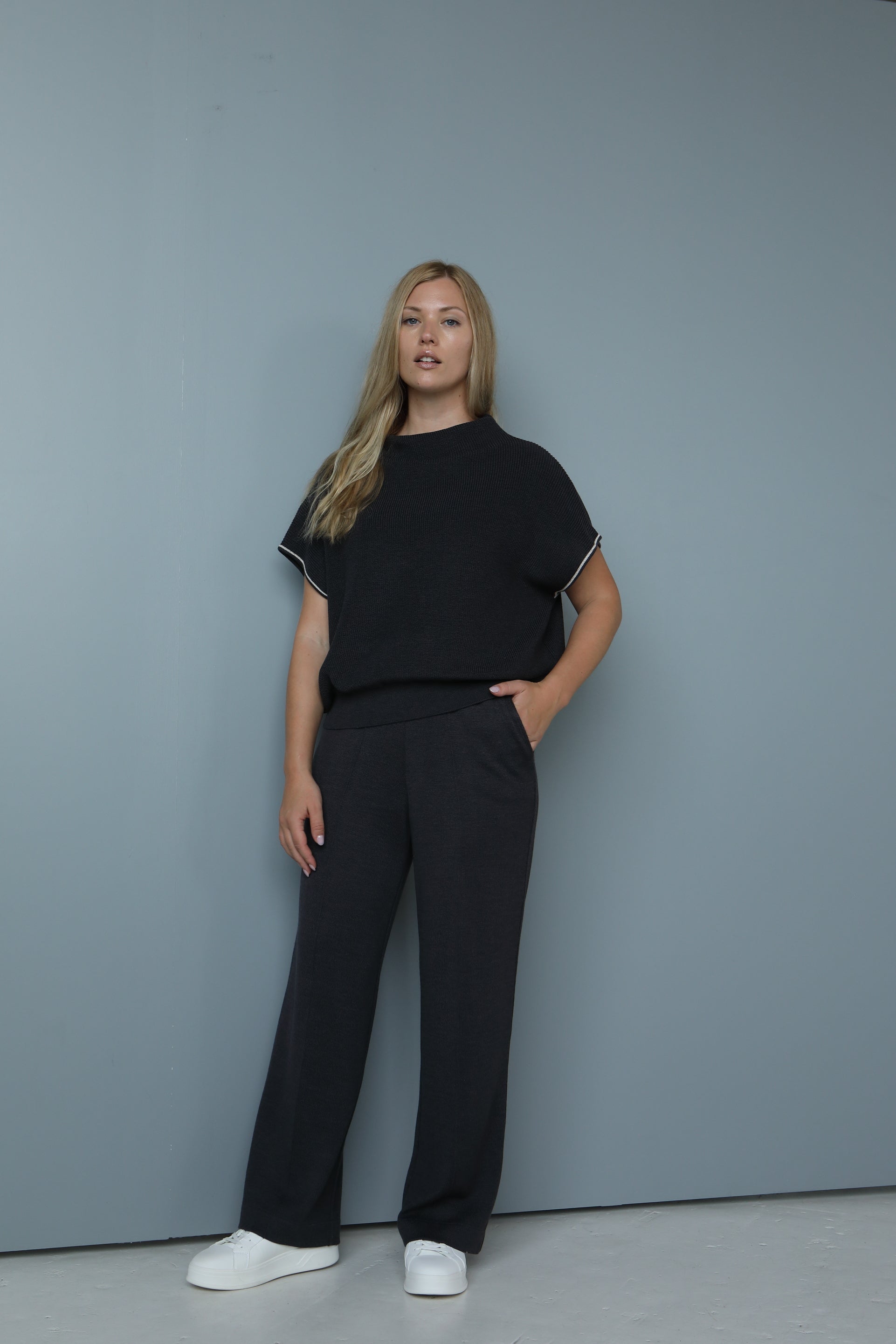 Loose fit knitted V- vest is a stylish piece of clothing that is perfect for creating a cozy and fashionable look. It is made of Italian fine merino yarn, which provides comfort and warmth in the cold season.