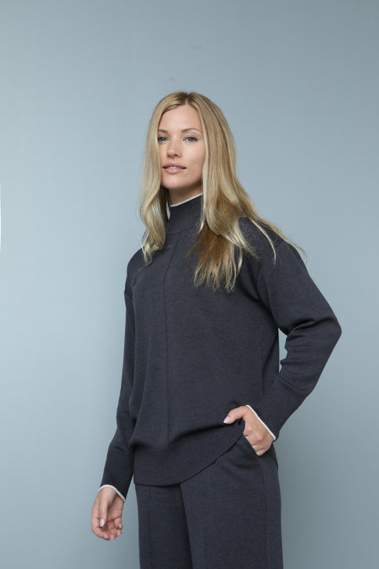 СВИТЕР С ВЫСОКИМ ВОРОТОМ цвета антрацит