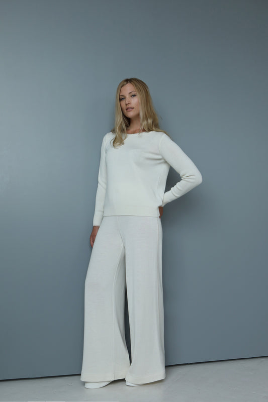 ДЖЕМПЕР КЛАССИКА С ВЫРЕЗОМ-ЛОДОЧКОЙ кремово-белого цвета