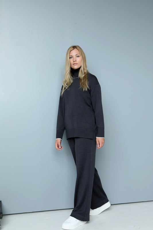 СВИТЕР С РУЧНЫМ ВЫРЕЗОМ антрацитового цвета