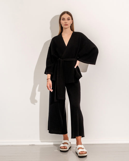 ТРИКОТАЖНАЯ КУРТКА-КИМОНО НА ЗАКАЗ черного цвета